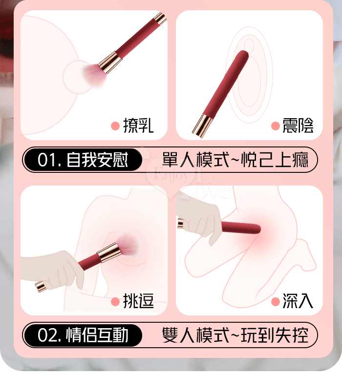 ROSELEX 勞樂斯 ‧ 趣逗棒(含毛刷)10段高頻震智能加溫按摩棒 強震/酥麻/輕巧/隱蔽/挑逗柔軟毛刷-紅