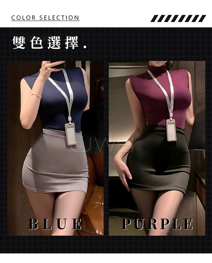 ►您現在的位置:首頁>情秘演繹.胸部可剪緊身包臀禁慾系OL秘書套裝-紫+黑【上衣+工牌+包臀裙+內褲】