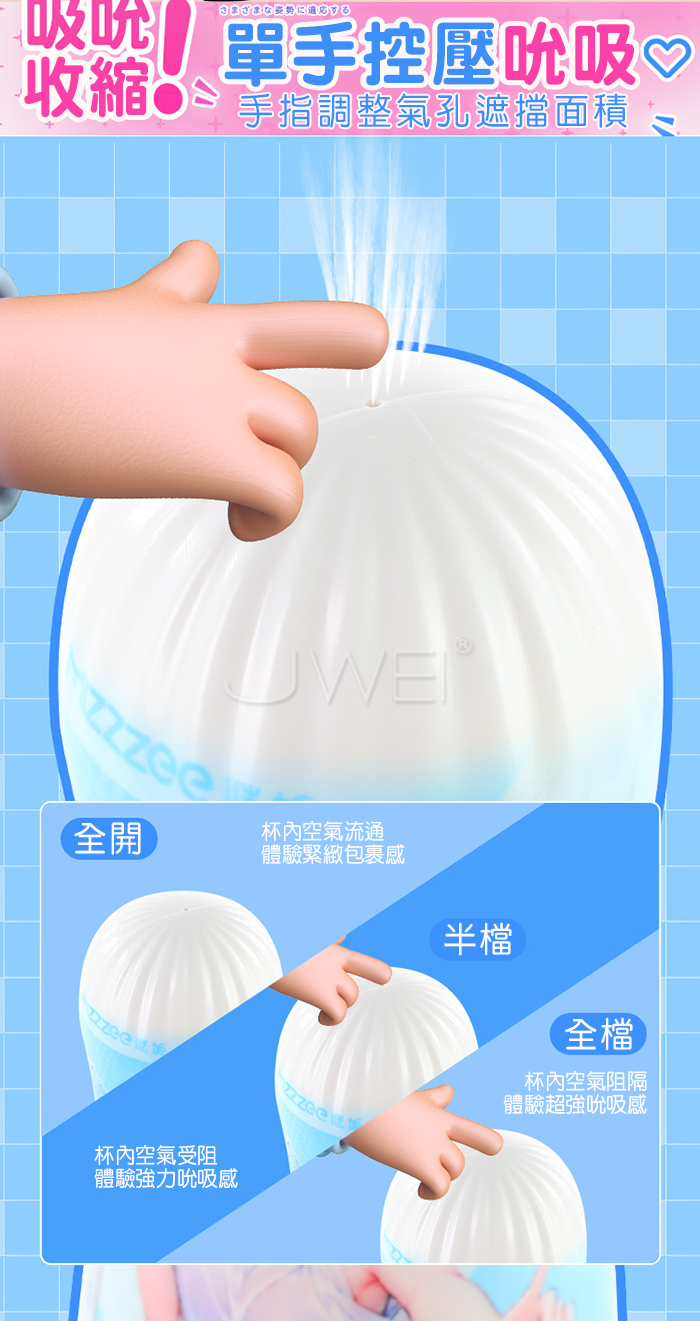 單手控壓吮吸,手指調整氣孔遮擋面積,快感自己掌握!