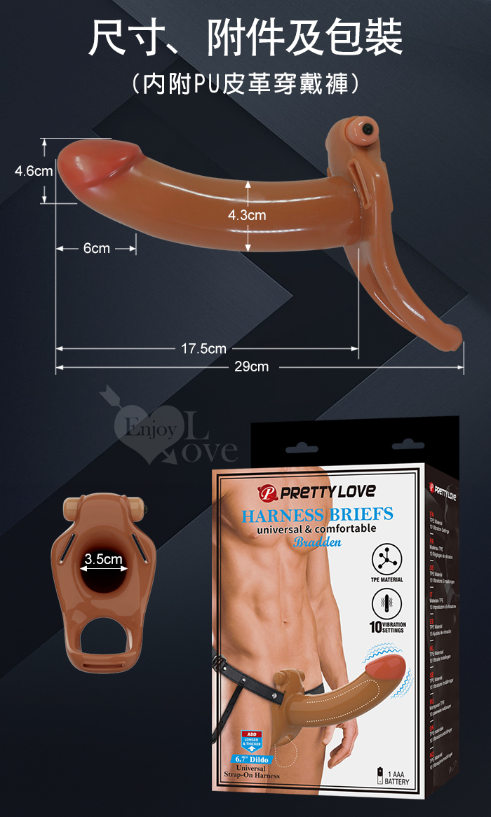 | 派蒂菈 ‧ Bradden 布拉登 10頻震動/男女共振/空心穿戴超大老二棒