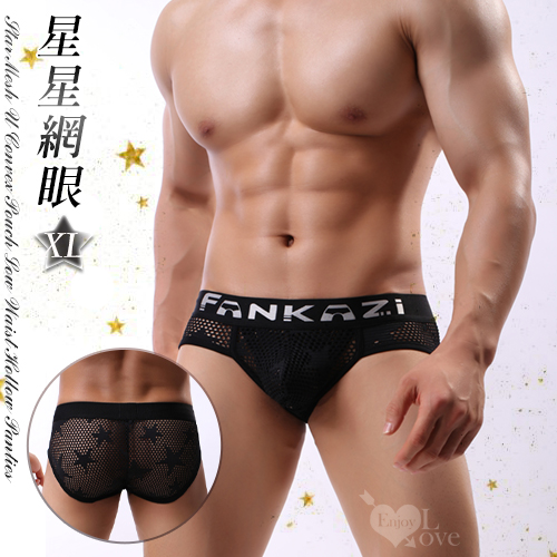 ►您現在的位置:首頁>《 Enjoy Love 》星星網眼U凸囊袋低腰鏤空內褲 - 黑﹝XL﹞
