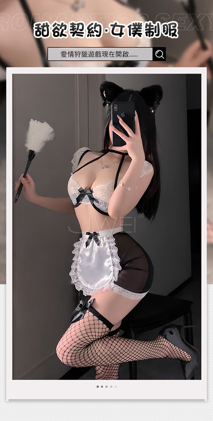 ►您現在的位置:首頁>契約俏女僕.深V低胸蕾絲誘惑美背透紗木耳邊裙擺甜欲女僕裝【上衣+短裙+T褲-黑色】