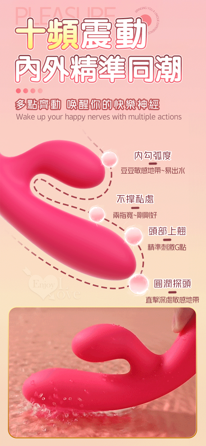PLEASURE 西婭 ‧ 雙強震動10頻撩撥入體內外刺激G點按摩棒﹝親膚矽膠/收腰設計/15微翹角度﹞洋紅