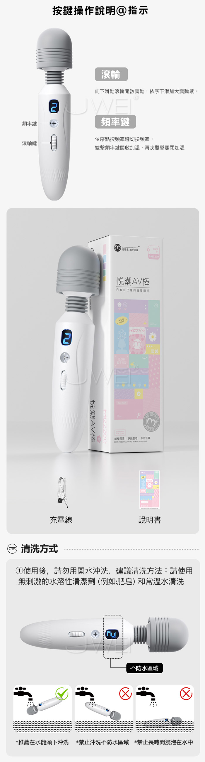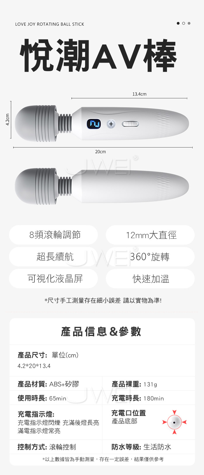 ■功能: 8頻滾輪調節震動、加溫