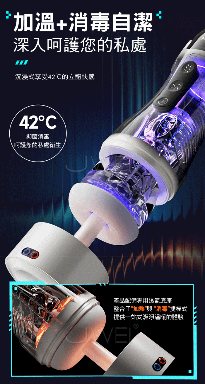 產品配備專用透氣底座,整合了“加熱”與“消毒”雙模式,提供一站式潔淨溫暖的體驗!
