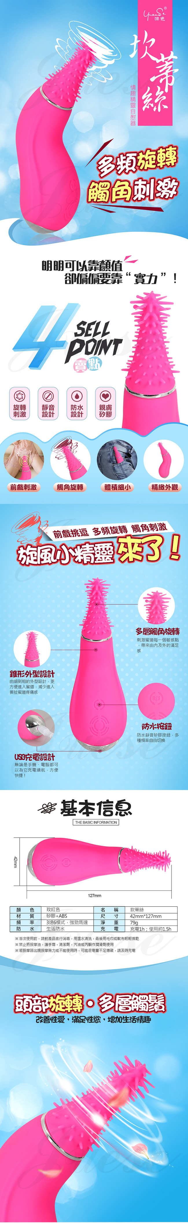 | 坎蒂絲 3頻6檔旋轉觸鬚刺激矽膠刺激器