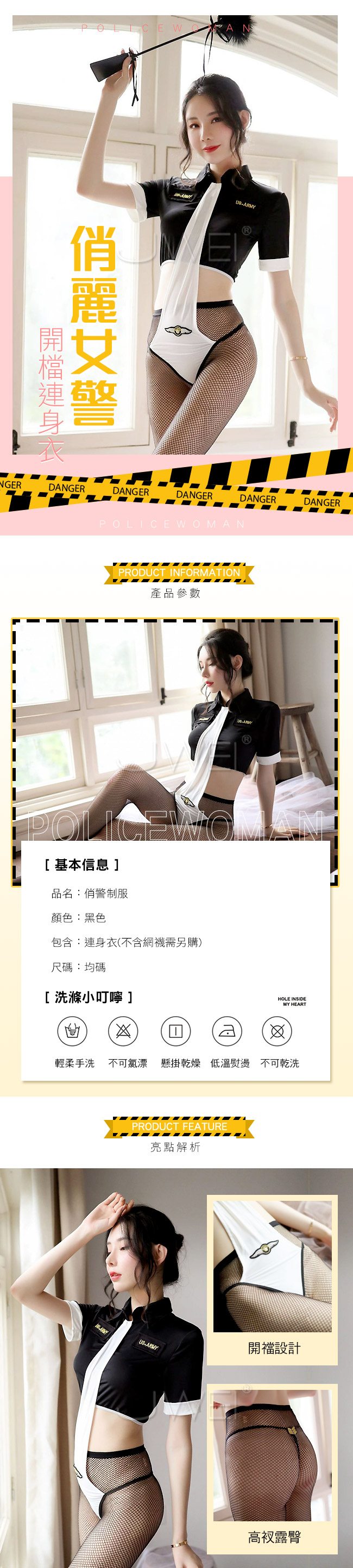 俏麗警探.分體式開襠警察角色扮演服二件組(黑色)
