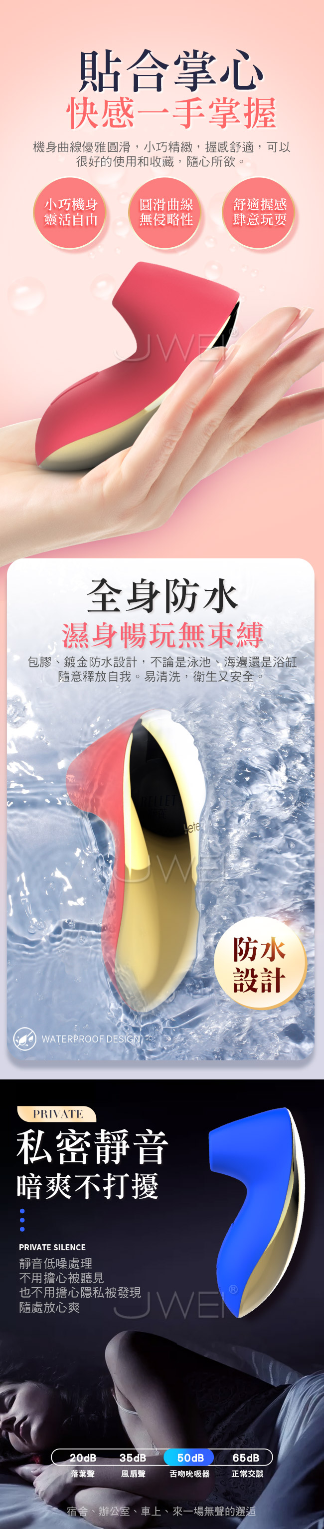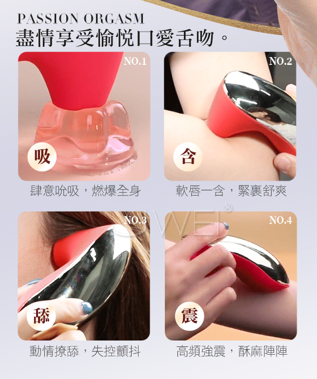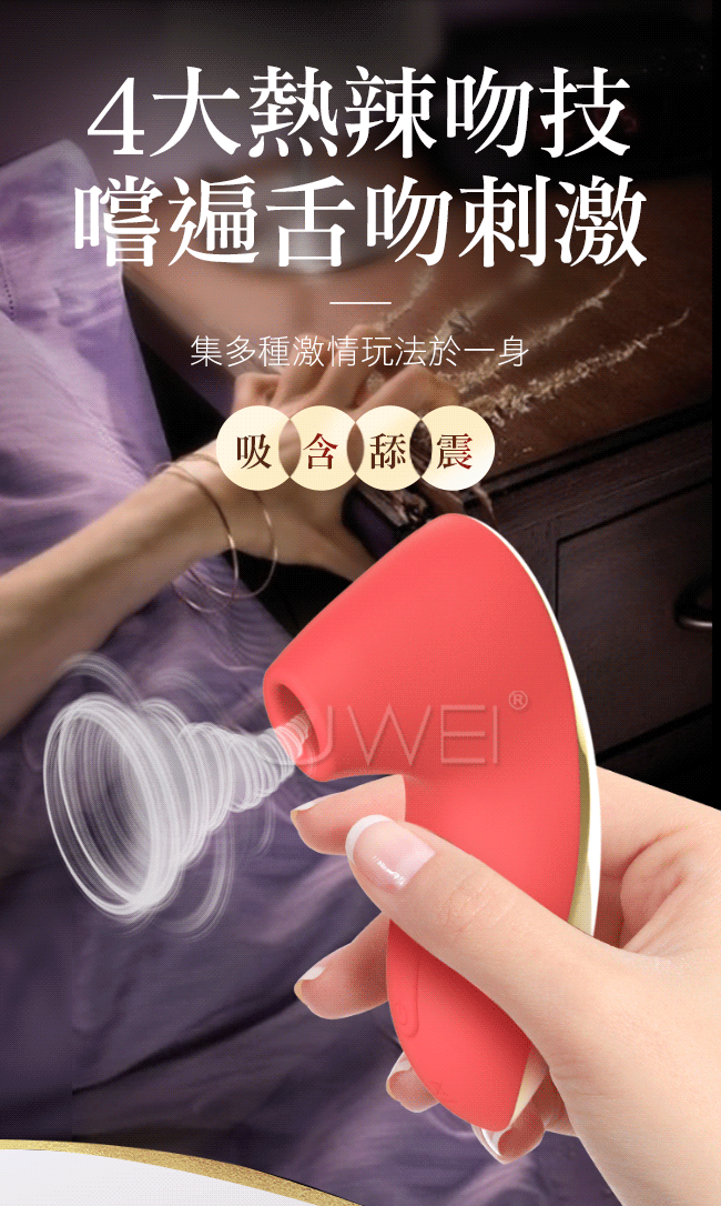 Leten.舌吻 3檔7頻防水吸吮器-玫紅