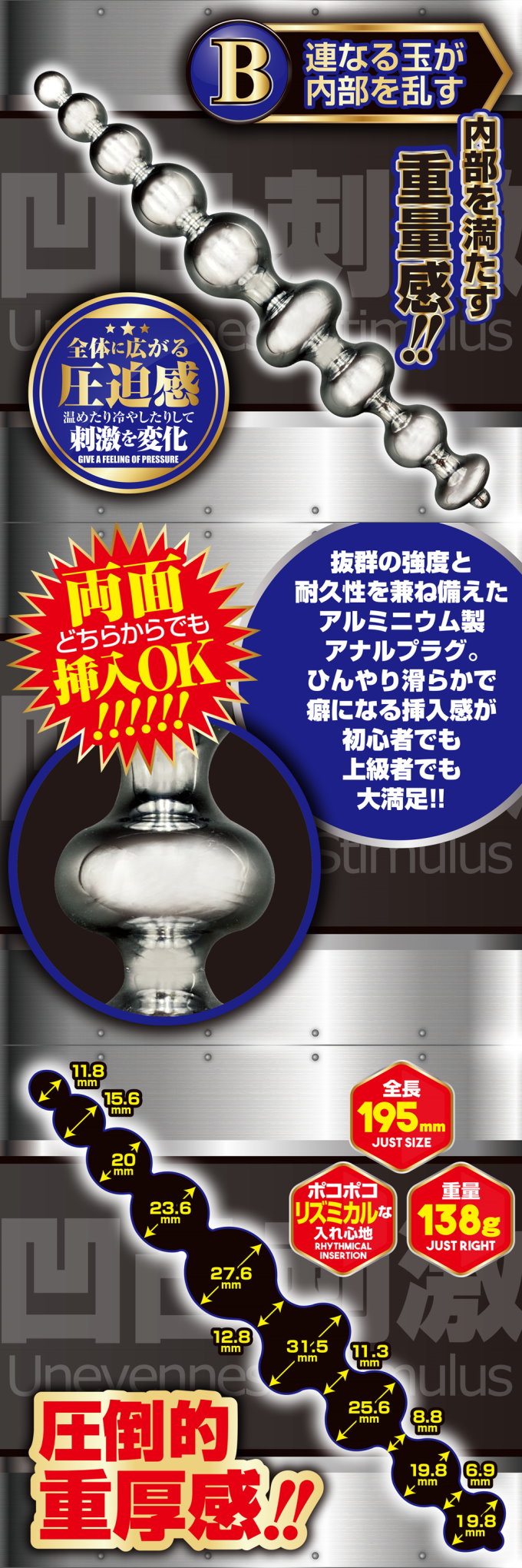 | 日本A-ONE*ANAL ALUMI重量感刺激後庭棒-B