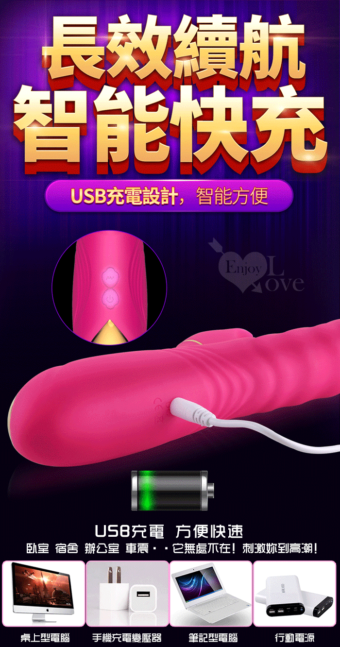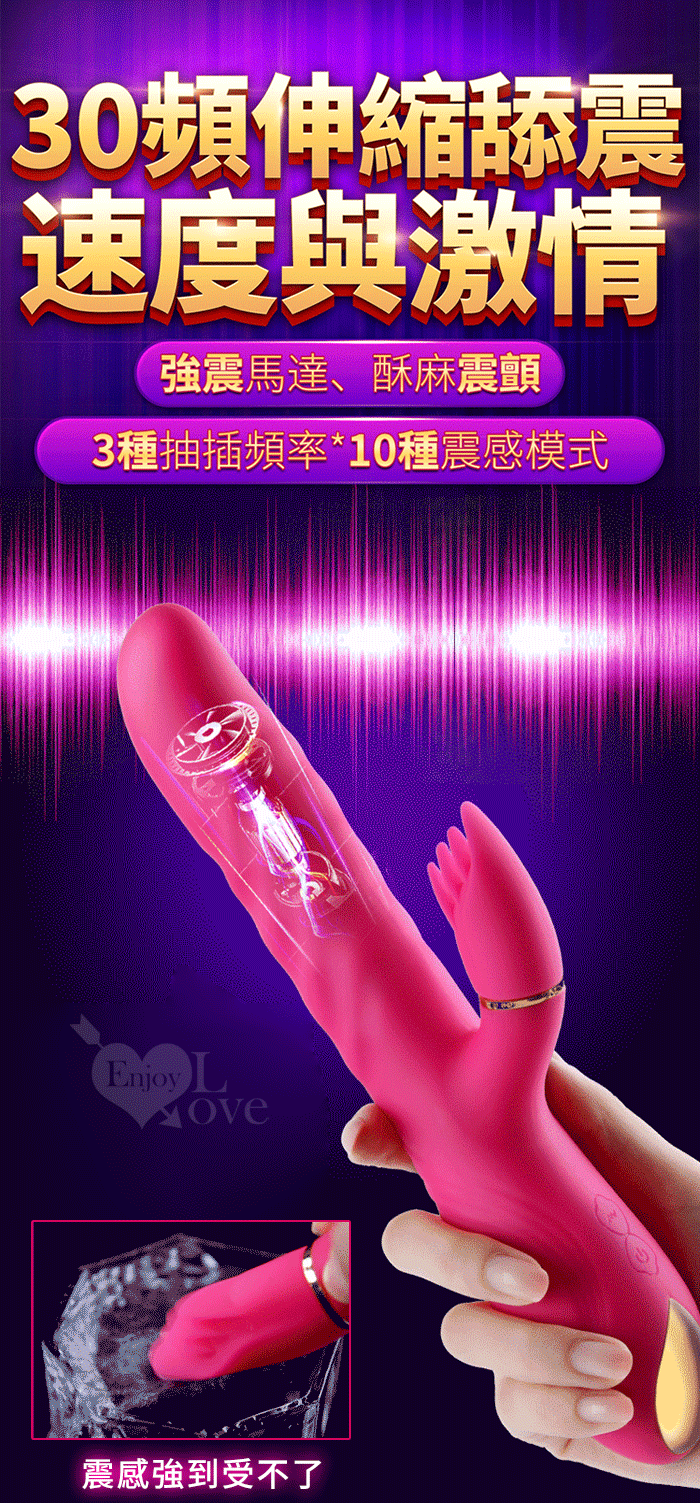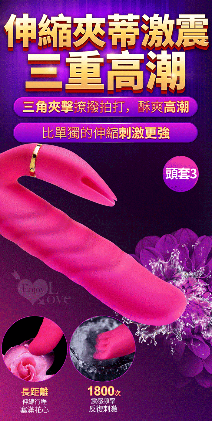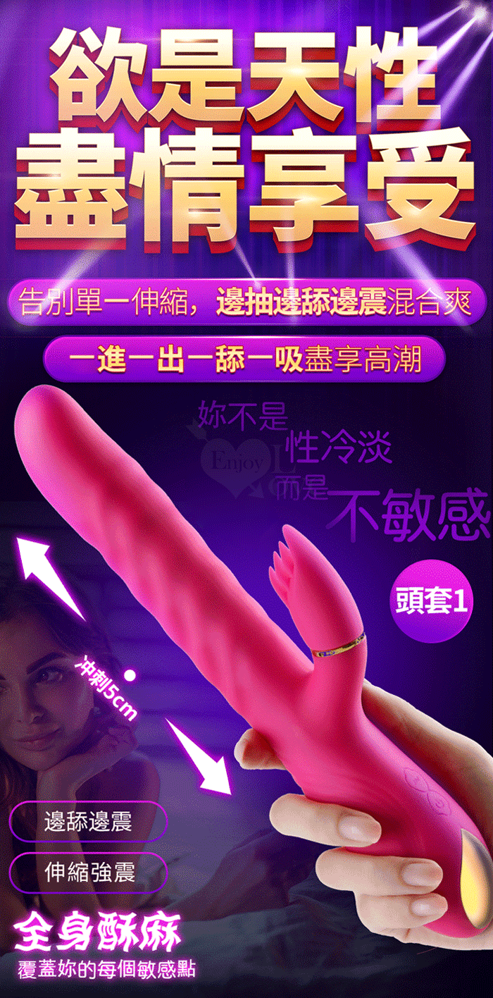 1、全自動高速伸縮刺激G點 2、3種小頭軟舌組合舔動撩撥刺激蜜豆 3、伸縮,舔動,撩撥一棒多用 4、雙馬達內外高潮 5、小頭不同造型,多重撩撥刺激敏感 6、全身防水靜音 7、液態矽膠 柔軟舒適 ■充電方式:直插充電 ■充電時長:2小時 ■使用時長:1小時 ■產品尺寸:詳如圖 ■出貨顏色:玫紅色