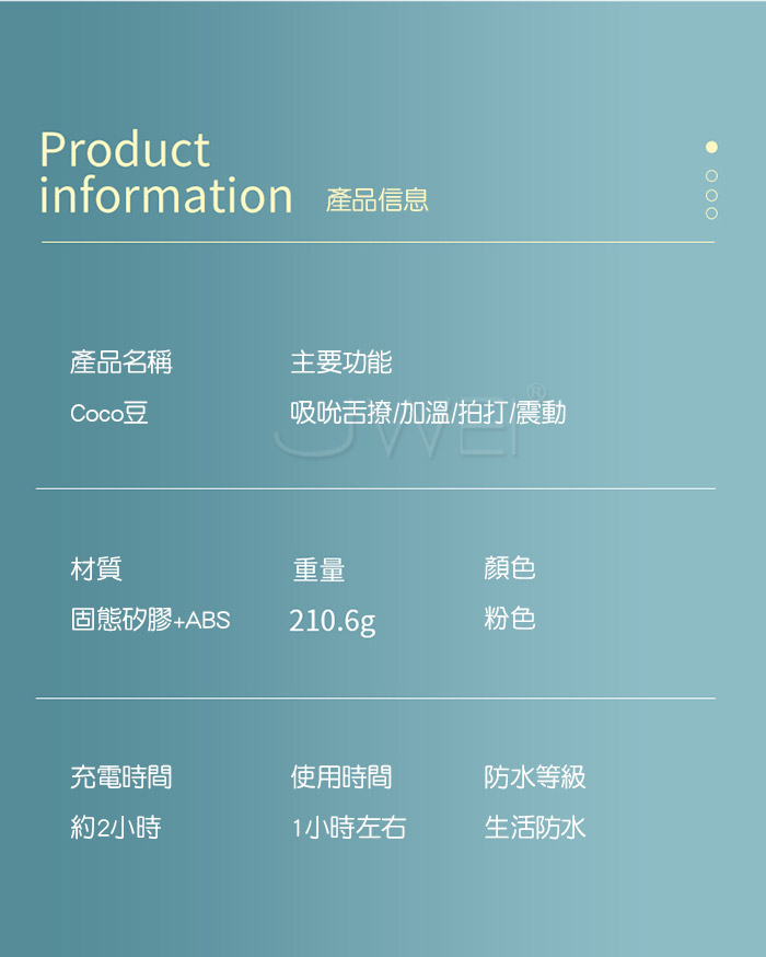 ■特色:10頻震動、5頻吸吮、5頻拍打、智能加溫