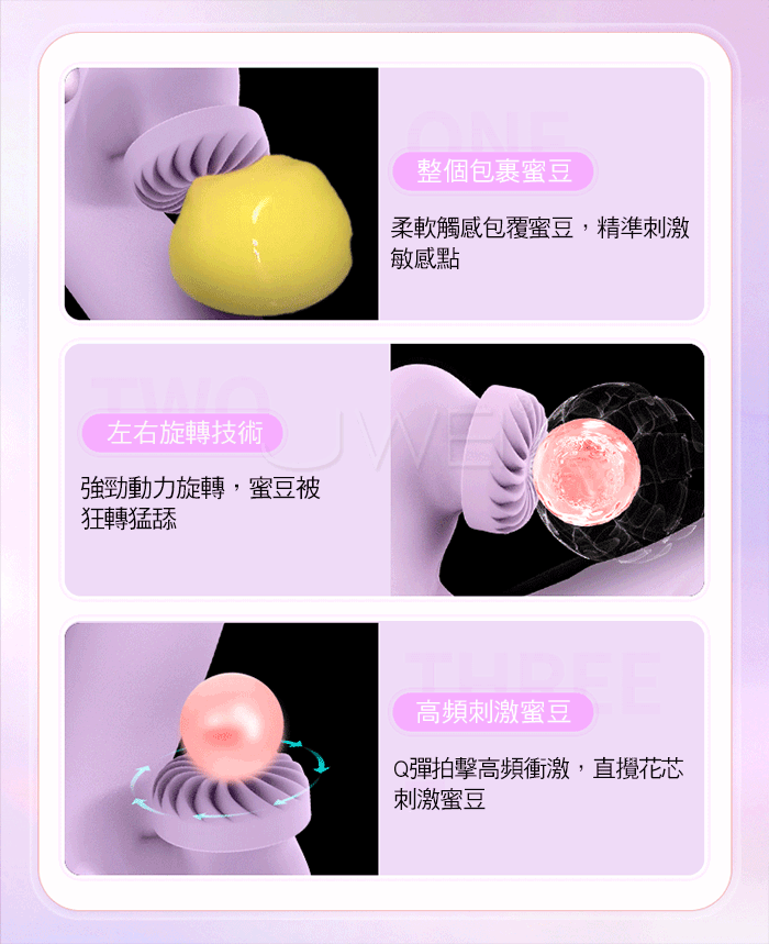 全能激浪,多重快感大噴湧!為亞洲女性多次高潮傾心打造;獨特旋轉 技術,內外總攻"火力"全開,快速引爆全身嗨點,強勁動力旋轉,蜜豆 被狂轉猛舔,讓你爽到停不下來;碩大圓潤頭部伸縮震顫 告別“無緣G 點高潮體質”柔軟矽膠材質,絲滑圓潤使用安心,無異味,不撐大、不 損傷,女性應該拋開傳統思想的束縛,勇敢追求性愛的權利