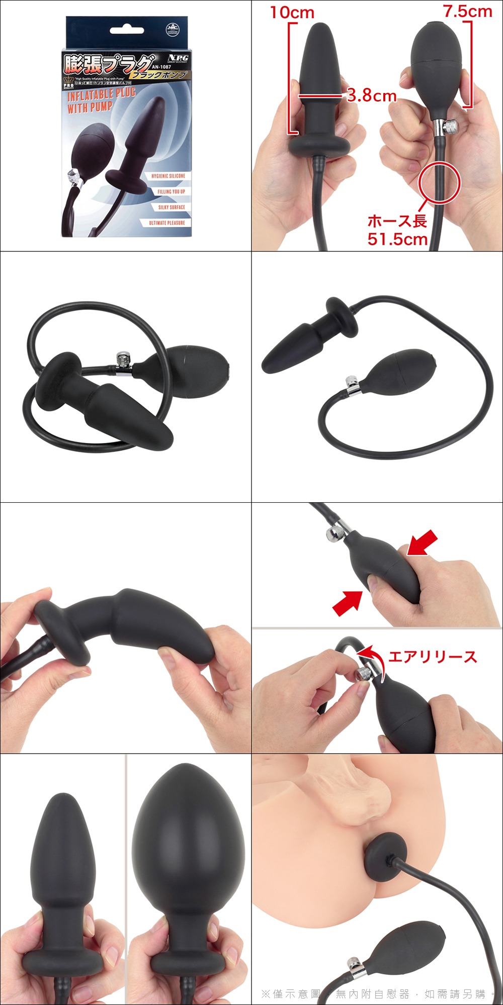 基本形式的最終版本!操作簡單,使用泵將空氣輸送到膨脹塞。 若要釋放充氣,請使用泵浦上連接的閥門。 膨脹插頭部分採用優質矽膠製成,插入固定性極佳。 它經久耐用,能很好地融入皮膚,並且在使用後易於清潔。 【注意】請勿過度擴展或使用。