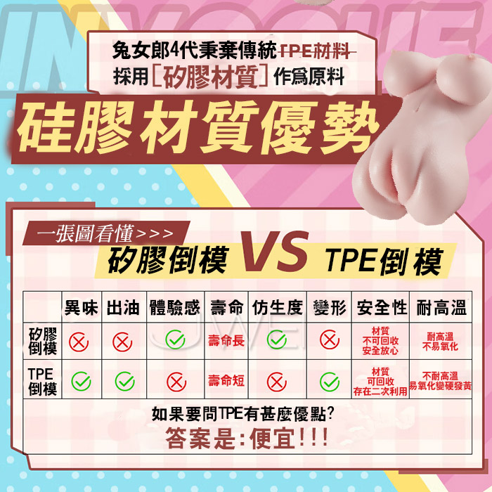 兔女郎四代,單通道包裹感更足,矽膠材質刺激度更高 矽膠材質﹐質地偏硬﹐刺激度更高 1:1矽膠復刻仿生感 「精妙刺激 立體雕刻」細節控的福音 「真人肉質手感」代入感更強更刺激,鍛鍊強度MAX 持久力MAX 通道5段設計 層層突破刺激到底。 產品規格 ■尺寸:大小詳如圖片標示 ■重量:如圖示 ■材質:矽膠