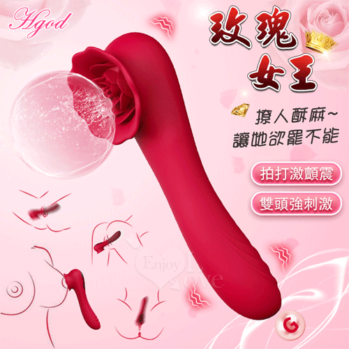 | Hgod 玫瑰女王 ‧ 超強悍雙刺激頭迷情玫瑰花朵鼓拍震多用途按摩棒﹝9頻拍打激顫震+親膚矽膠舒適+USB磁吸充電﹞