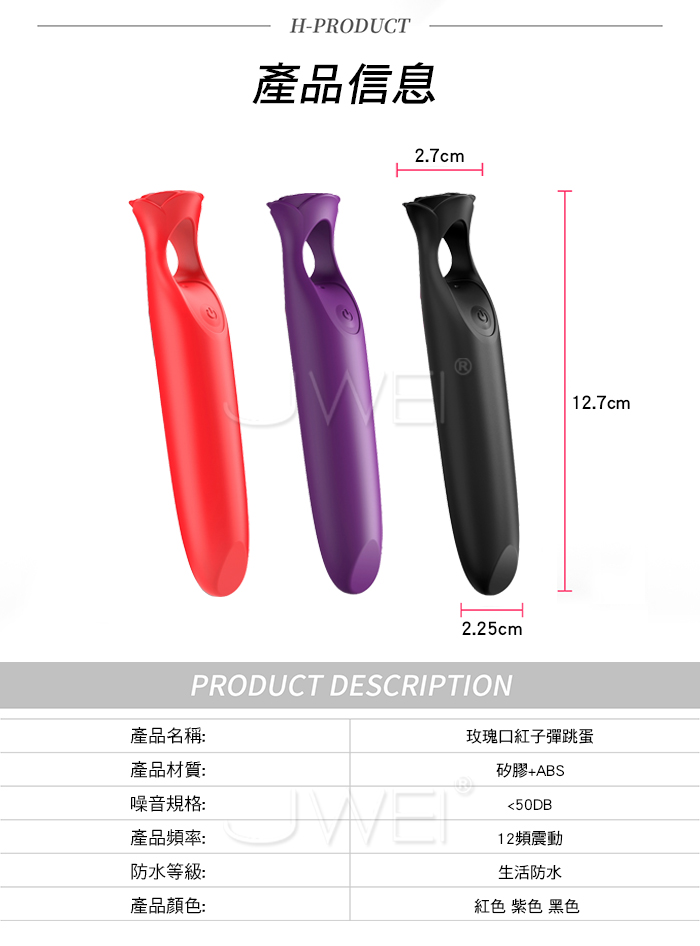 玫瑰迷你口紅,激顫爆震全新體驗 12頻花樣震動調情,滿足你深層的慾望 唇膏&玫瑰的靈魂碰撞,指環設計可防止震動器滑落 產品規格 ■產品材質:TPE+ABS ■規格:詳如下圖所示 ■功能:12頻酥麻震動 ■供電方式:USB充電