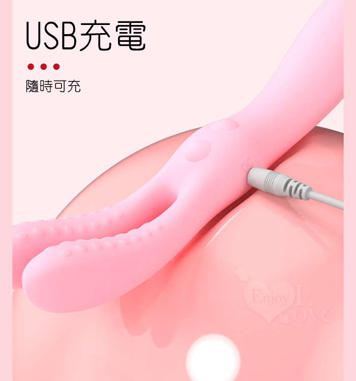 YUNMAN 云曼 ‧ 長耳兔 10X10夾震撩乳+入體強震 雙頭多功能按摩棒﹝多點刺激+親膚矽膠+USB充電﹞