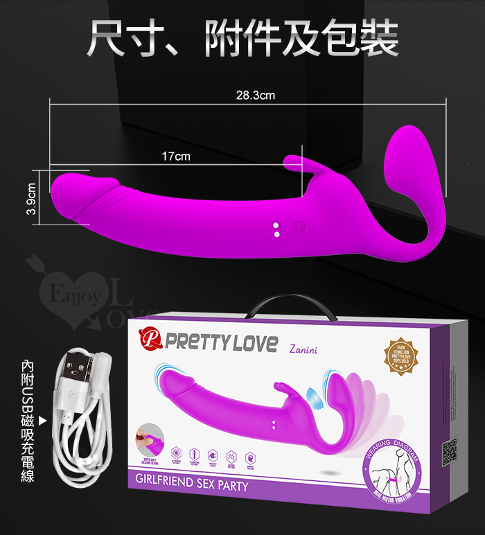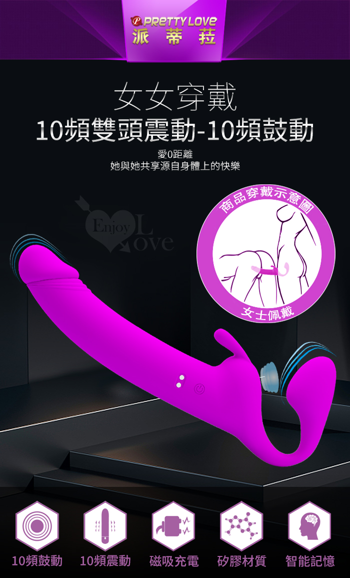 | 派蒂菈 ‧ Zanini 愛0距離 女女穿戴快樂共享 雙頭強震+鼓動穿戴按摩棒﹝10頻3馬達運轉+親膚矽膠+磁吸充電﹞