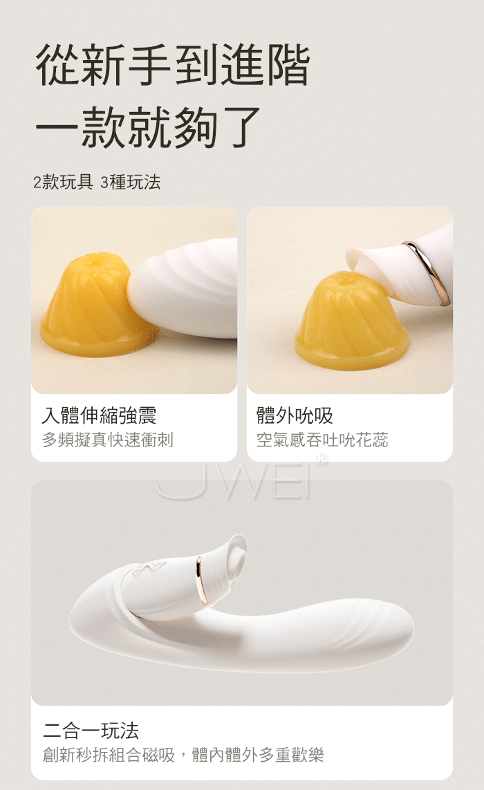 | 花間吻.6x6頻伸縮強震深吻吮吸 分離式加溫智能遠控按摩棒【基礎款】
